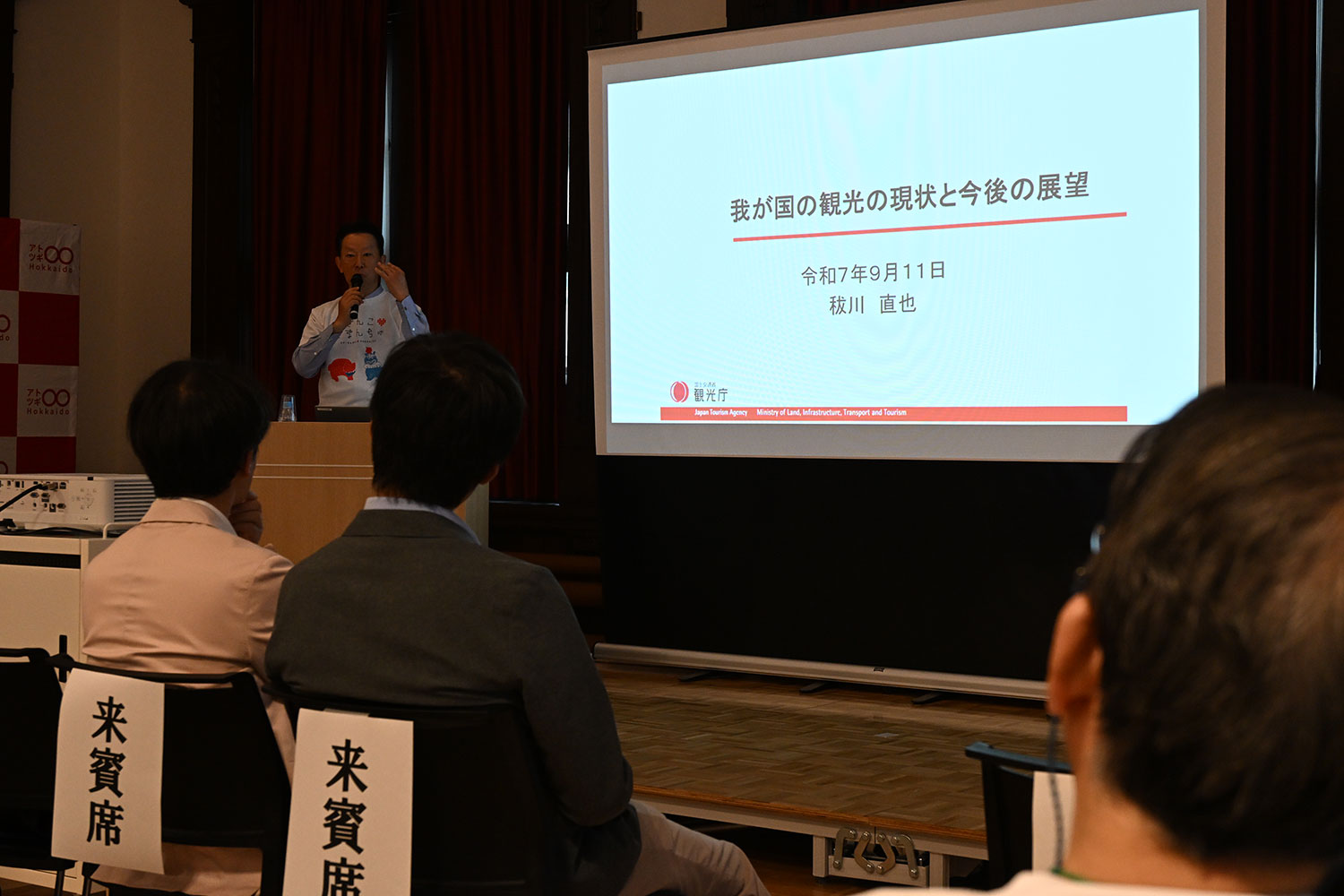 「どさんこしまんちゅフォーラム with アトツギ○○マルマルHokkaido」が9月11日、北海道庁旧本庁舎 赤れんが庁舎で開催されました。本フォーラムは、どさんこしまんちゅプロジェクト事務局と北海道経済産業局の共催により実施され、約100人が参加しました。前観光庁長官の秡川直也氏や北海道エアポート株式会社の山崎雅生社長、九州大学の田中俊徳氏に講演いただきました。